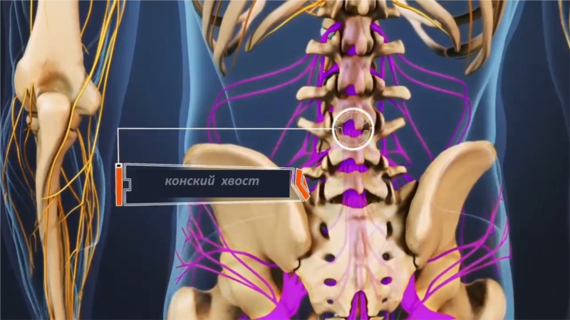 Конский хвост — это пучок нервных корешков, который отходит от спинного мозга на поясничном уровне и участвует в иннервации толстой и прямой кишки, половых органов, промежности, нижних конечностей. Он состоит из 10 пар спинномозговых нервов и по виду действительно напоминает конский хвост.