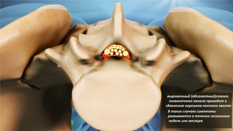 У небольшой части пациентов синдром конского хвоста развивается в течение нескольких месяцев (например, при сдавлении нервных корешков растущей опухолью позвоночника или при быстропрогрессирующем стенозе позвоночного канала).
