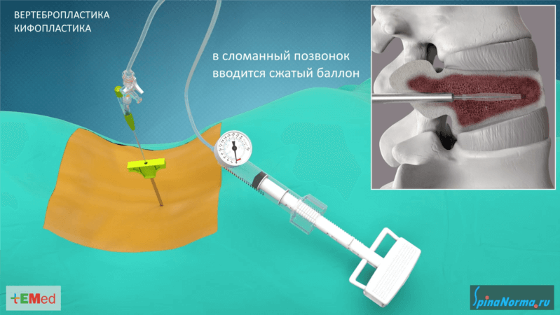 После чего в сломанное тело позвонка вводится специальный баллон в сжатом состоянии.