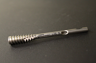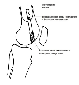 Полый артро-медуллярный шунт, изготовленный из биосовместимого титанового сплава, устанавливается в пораженный сустав методом артроскопии и соединяет костномозговую и суставную полость.